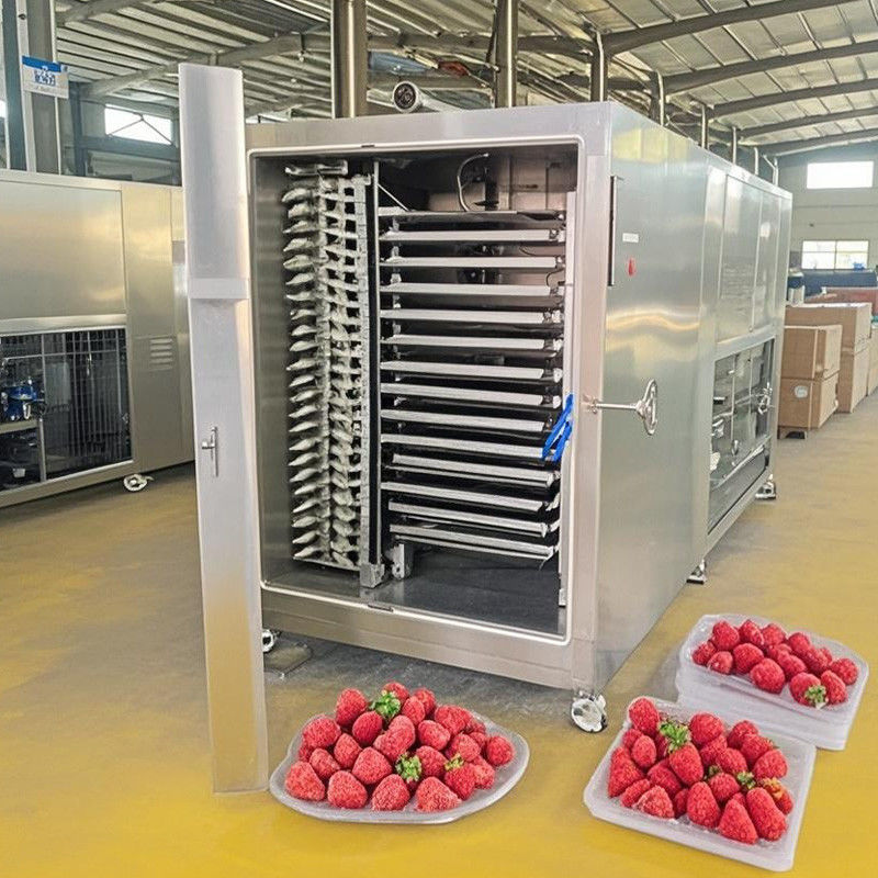 Diese 200 kg schwere Einheit ist für Nahrungsmittel mit hoher Feuchtigkeit optimiert und verfügt über eine patentierte "Schnellfriertechnologie" (-40°C in 30 Minuten), um die Bildung von Eiskristallen in Fleisch-/Fruchtzellen zu verhindern.Automatische Ölfreie Vakuumpumpen-Schalter zwischen Primär- und Sekundärtrocknung.